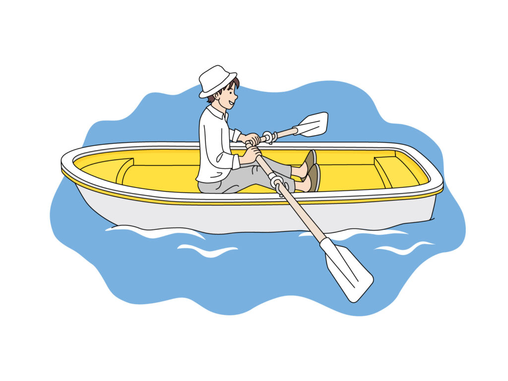 “He floated a boat on a serene lake.”
