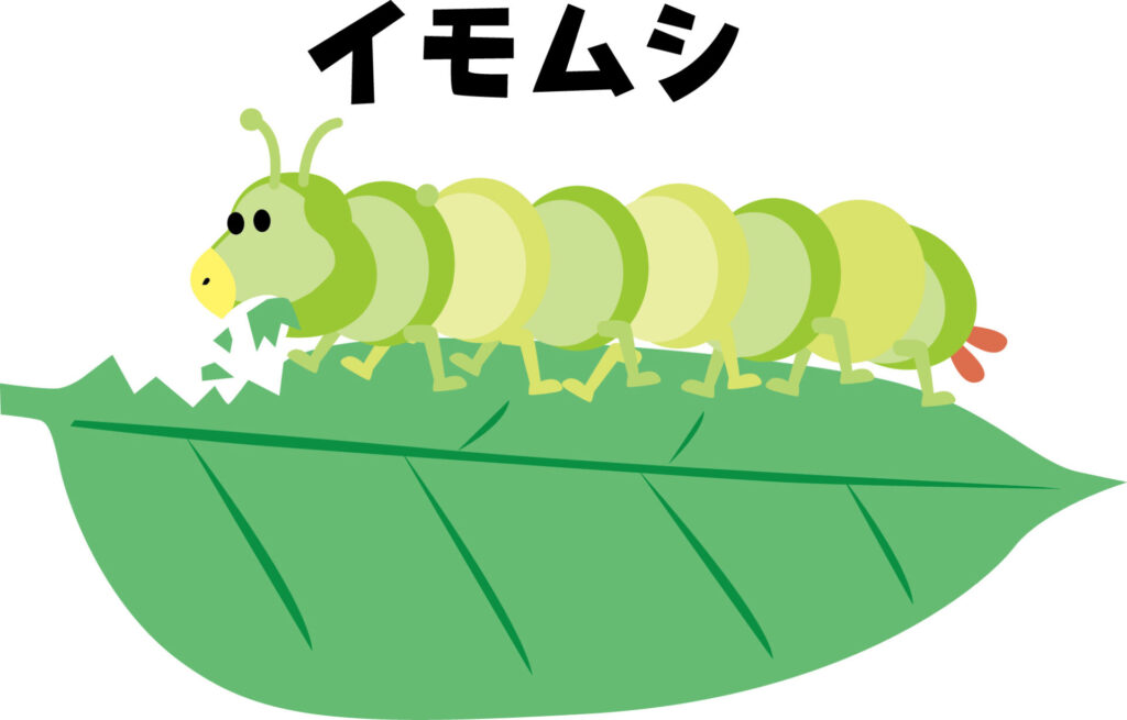 リンゴ、栗、柿など様々な木と様々な種のイモムシを50組も試します。